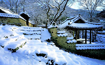 눈 내리는 겨울, 좌측에서 바라본 광풍각 모습이다.